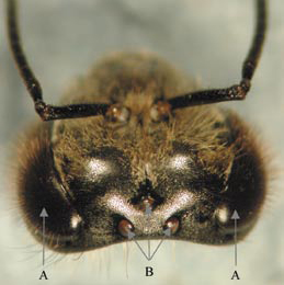 • Beyin: Her ne kadar küçük olsa da yüksek kapasiteye sahiptir. Beynin ortasındaki önemli bir bölgeye “Mantar gövdesi” denir çünkü kesiti iki mantarı andırır. Bu alanın koku alma, öğrenme ve kısa süreli hafıza oluşumunda yer aldığı bilinmektedir ve son zamanlarda böceklerde uzun süreli hafıza oluşumunda da önemli olduğu gösterilmiştir.