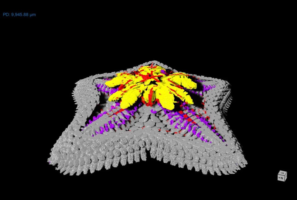 To gain a more detailed understanding of the behavior of specific crucial genes, the researchers individually tagged them with fluorescent dyes. This meticulous approach allowed them to generate an intricate map showcasing the distribution of these genes throughout the sea star’s body.