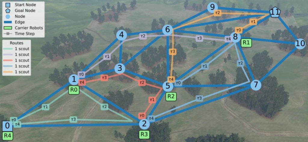 Dimmig, Wolfe, and their team have presented a method for orchestrating the actions of robot teams, grounded in two primary programming strategies— the construction of a dynamic topological graph and the utilization of mixed-integer programming. Their methodology incorporates the deployment of two distinct categories of robots. The initial type is assigned mission-oriented tasks, while the second type functions as scouts, exploring environments to gather data and mitigate uncertainty, thereby streamlining the accomplishment of tasks.